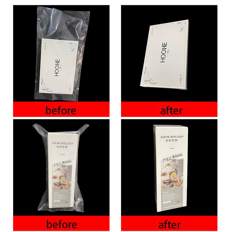 Lorsqu'elles sont chauffées, les chaînes moléculaires gagnent de l'énergie et reviennent de l'état étiré à l'état recourbé naturel, provoquant le contrat du film et adhérez étroitement au produit. |